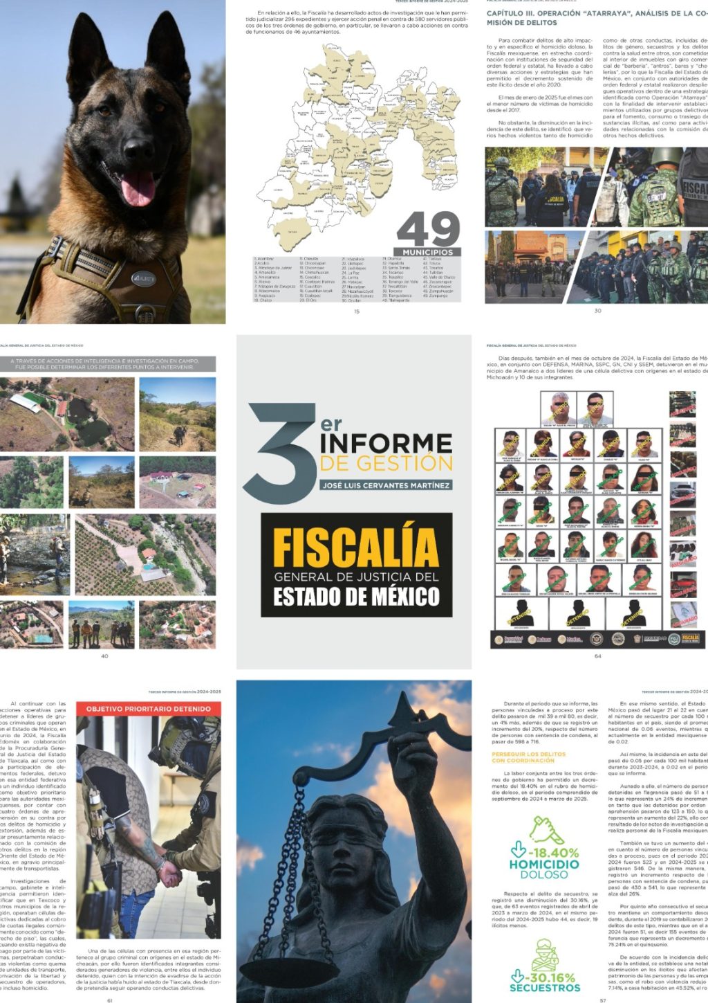 Este tercer informe contempla las acciones operativas realizadas por la Fiscalía del Estado de México, en el periodo que comprende del 1 de abril del 2024 al 31 marzo del 2025, las cuales dieron como resultado la disminución de la incidencia delictiva general así como de los delitos de alto impacto.