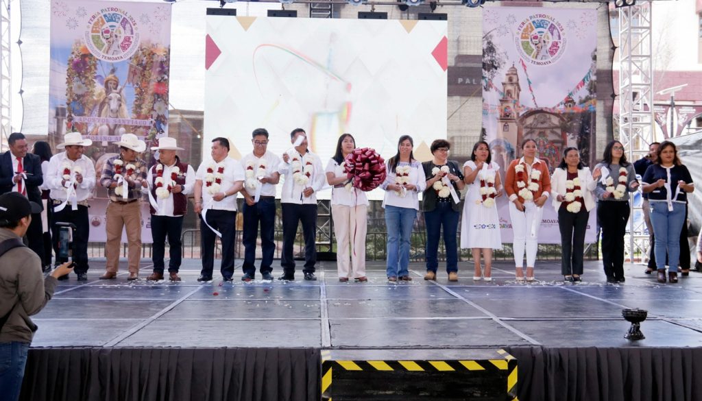 Posteriormente, en la Plaza Cívica Miguel Hidalgo, la presidenta municipal Berenice Carrillo Macario cortó el listón inaugural de las actividades artísticas y culturales de la Feria Patronal Temoaya 2025, acompañada por destacadas personalidades como Nelly Rivera Sánchez, diputada local; Horacio Jiménez López, delegado regional de la Secretaría del Campo; Margarita Camacho Baeza, directora de la región 30 de Zinacantepec de la Secretaría del Bienestar, en representación de la presidenta de la República, Claudia Sheinbaum Pardo; y Xiadany Álvarez Palomares, representante de Adriana Monserrat Rodríguez Santana, Directora de Gobierno Regional Toluca, en representación de la gobernadora Delfina Gómez Álvarez. También estuvieron presentes integrantes del cabildo y funcionarios municipales.