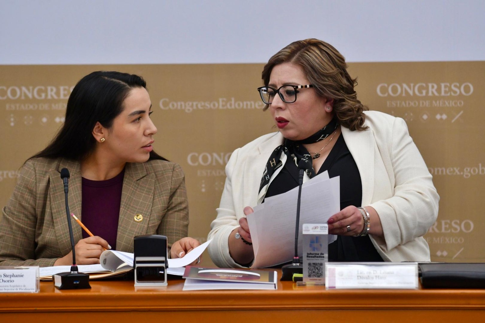 Toluca, Estado de México, 13 de noviembre de 2025. La diputada Arleth Stephanie Grimaldo Osorio, presidenta de la Comisión Legislativa de Vigilancia del Órgano Superior de Fiscalización del Congreso mexiquense, recibió los informes de la Cuenta Pública del gobierno estatal central, organismos auxiliares y órganos autónomos de la entidad, así como de los 125 gobiernos municipales correspondientes al ejercicio fiscal del año 2024.