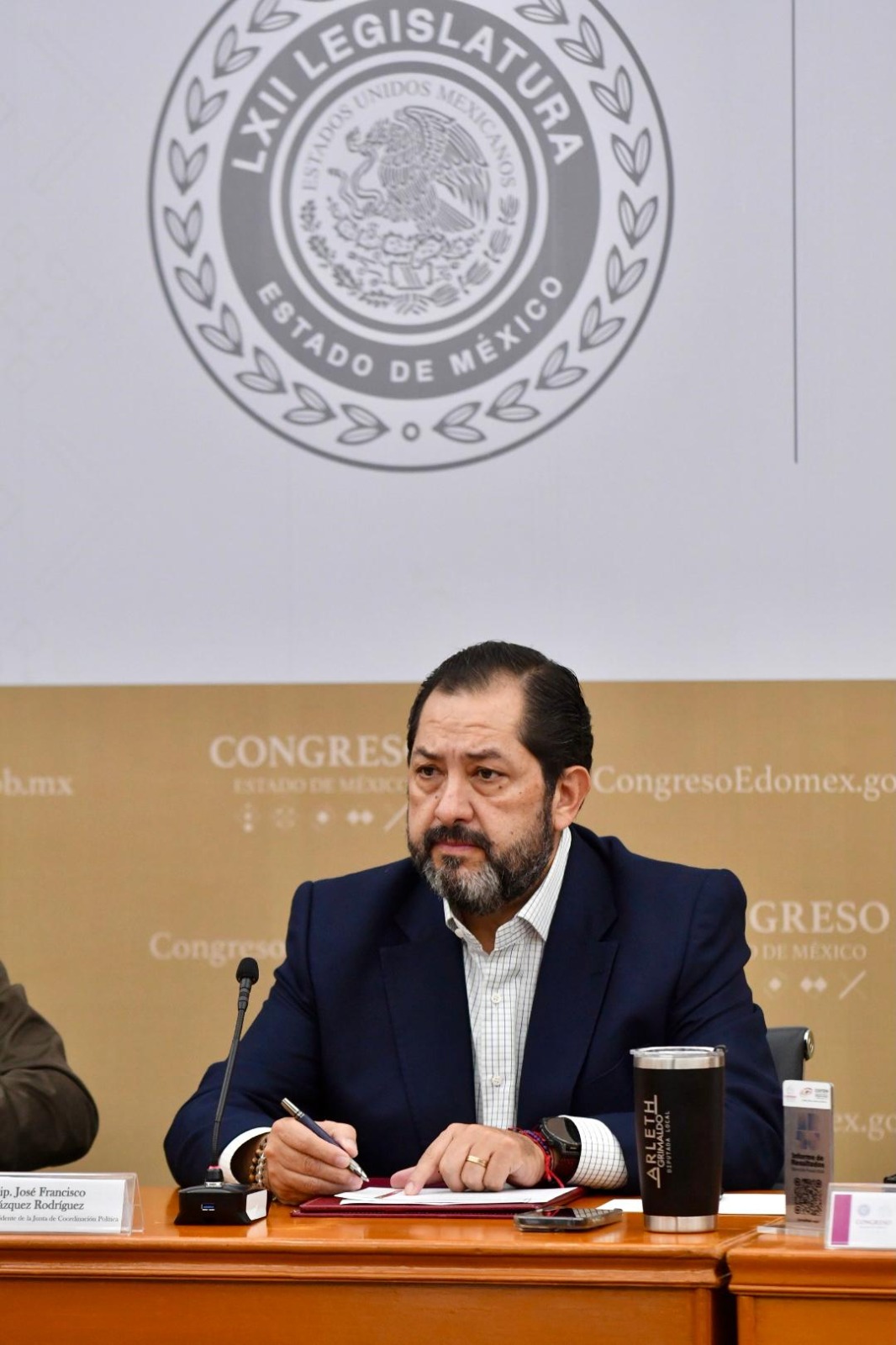 En su intervención Francisco Vázquez Rodríguez, presidente de la Junta de Coordinación Política de la LXII Legislatura del Estado de México, sostuvo que en el Estado de México se construye un nuevo modelo de gobierno donde la honradez sustituye al abuso, donde la eficiencia reemplaza la simulación y donde la transparencia se convierte en una forma de respeto al pueblo.