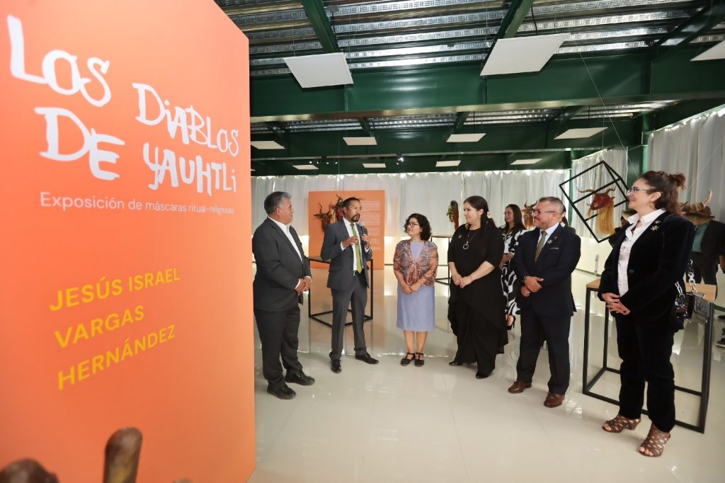 Asimismo, se llevó a cabo la inauguración de la exposición de máscaras rituales-religiosas “Los Diablos de Yauhtli”, del artista y docente Jesús Israel Vargas Hernández y estudiantado auriverde del Plantel “Dr. Pablo Gonzalez Casanova” de la Escuela Preparatoria. La muestra estará disponible hasta el 31 de mayo