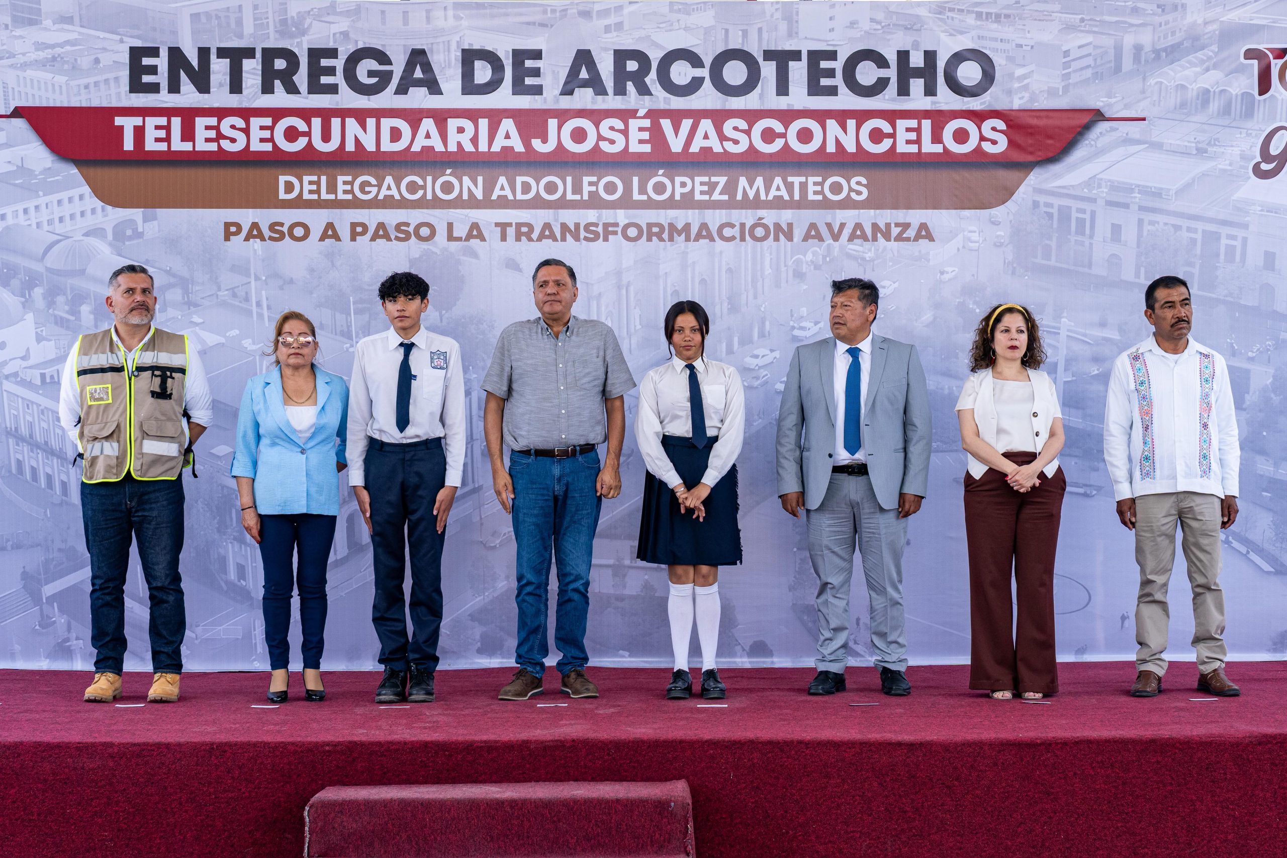 Toluca, Estado de México, 27 de abril de 2026.- El alcalde Ricardo Moreno entregó el arcotecho de la Telesecundaria José Vasconcelos en la delegación Adolfo López Mateos que permitirá beneficios directos a sus 130 estudiantes y a la comunidad docente a fin de poder realizar diversas actividades cívicas, deportivas y recreativas en condiciones seguras, protegidos de las inclemencias climáticas.